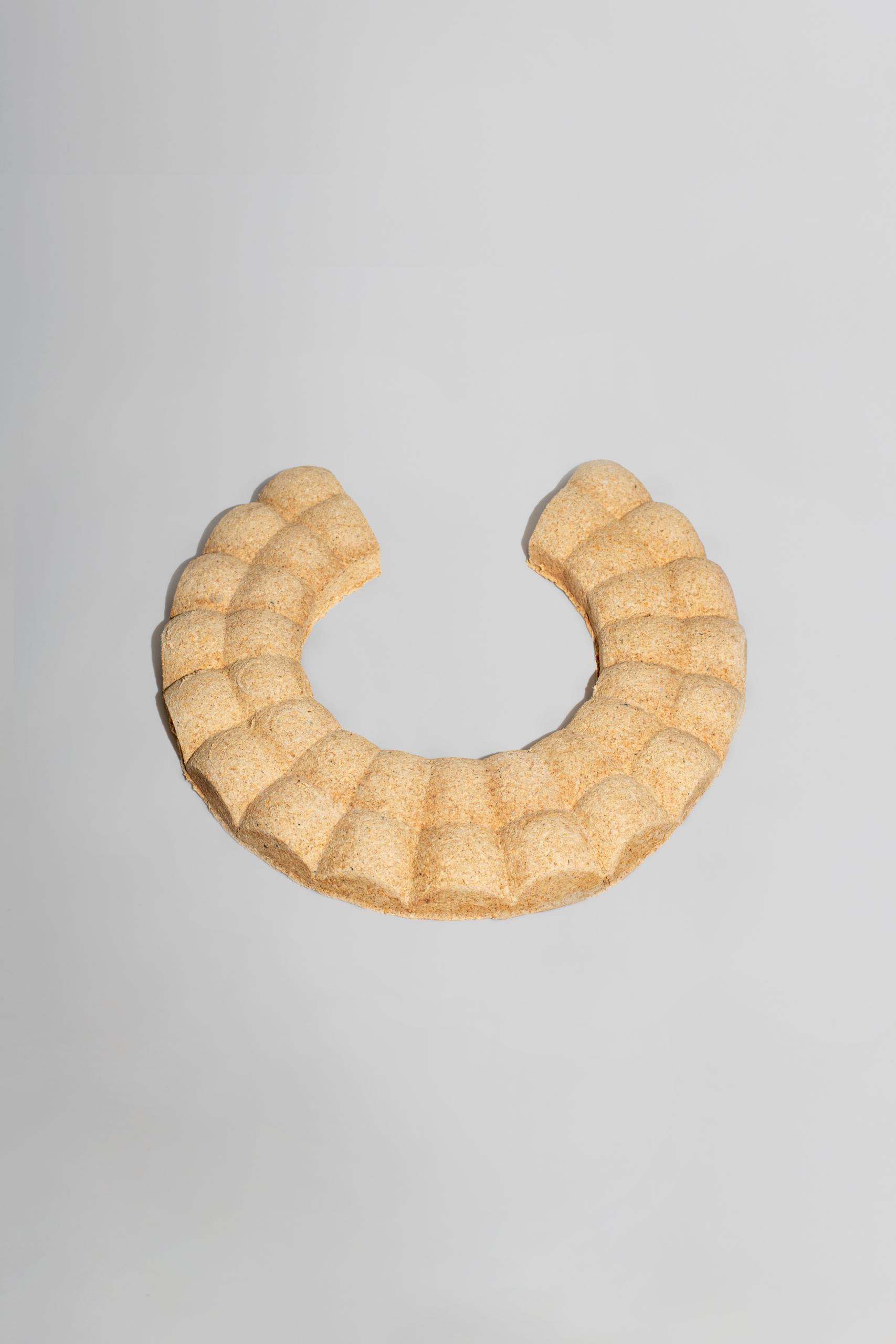 我々は皮革製造の工程で一般的に廃棄されてしまう「床革」の削り屑を用いることで床革の質感を持ち合わせながら本革ではつくり得ない立体的な成形が可能であることに着目し、そのプロセスを「L.F.M.( Leather Fiber Molding)」と名付けました。